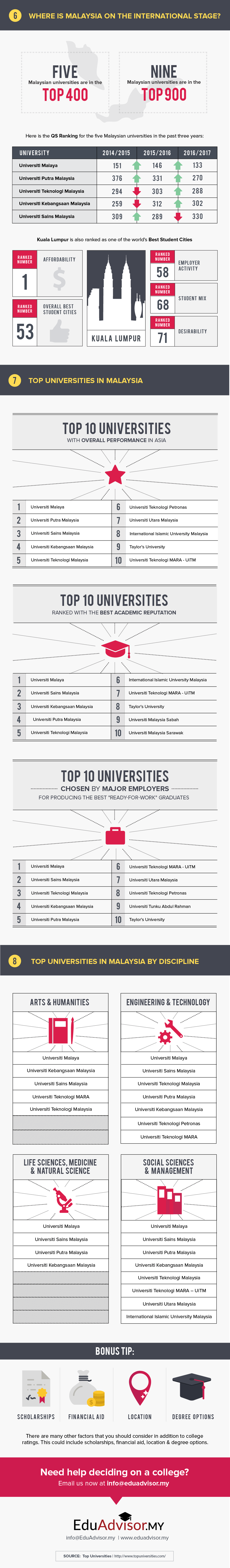 How did the rest of our Malaysian universities fare? What are some of the top universities in Malaysia that are recognised on the international stage? Find out more in our infographic below.