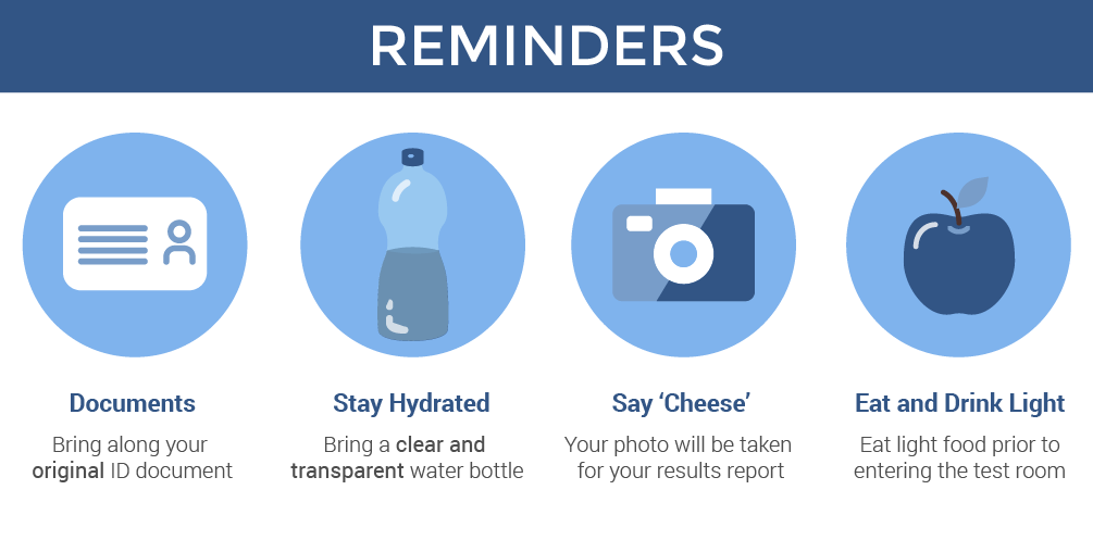 Also, you will be required to have your photograph taken on that day to serve as another form of security measure and it will appear on your Test Report Form (results report).